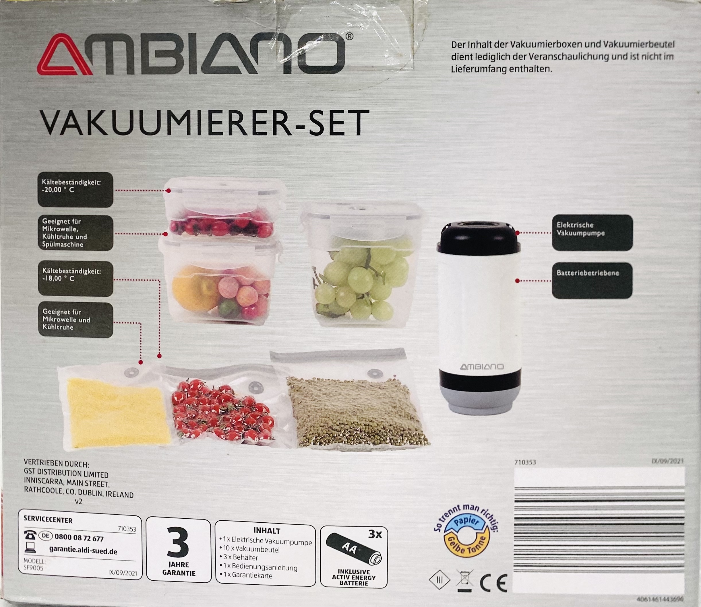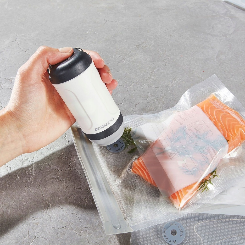 Bộ hút chân không Vakuumierer Ambiano với máy hút chân không sử dụng pin 2A. Bộ gồm có: