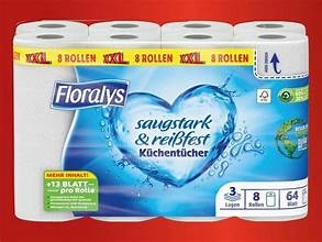 Giấy bếp Floralys Saugstark & Reißfest Küchentücher XXL 3lag. 8x64 Rollen với độ thấm hút và chống rách có 3 lớp, 64 tờ/cuộn, 8 cuộn trong bịch.Hàng trong kho: Còn hàng