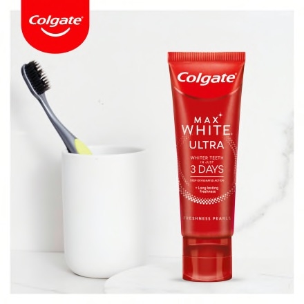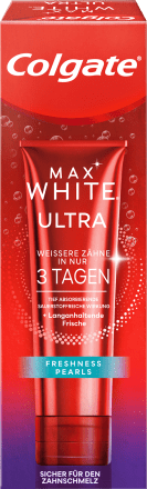 Trải nghiệm sự phát triển rực rỡ trong việc làm trắng răng khi đánh răng với Kem đánh răng Colgate Max White Ultra Freshness Pearls với lớp bọt ấm, đậm đà chứa hàng triệu phân tử oxy hoạt động. Những phân tử thông minh trong kem đánh răng làm trắng này sẽ phát hiện và loại bỏ các vết ố trên bề mặt cũng như sâu trong 3 ngày và nó thậm chí còn được chứng minh lâm sàng.
