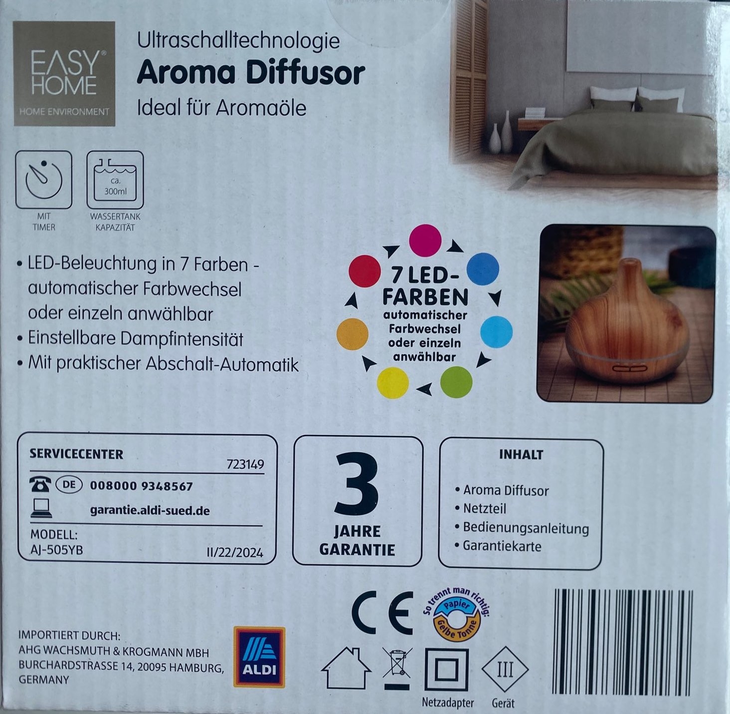Máy khuếch tán hương thơm EASY HOME/Aroma Diffuser với chế độ thay đổi màu sắc tự động hoặc có thể lựa chọn màu riêng lẻHàng trong kho: Còn hàng