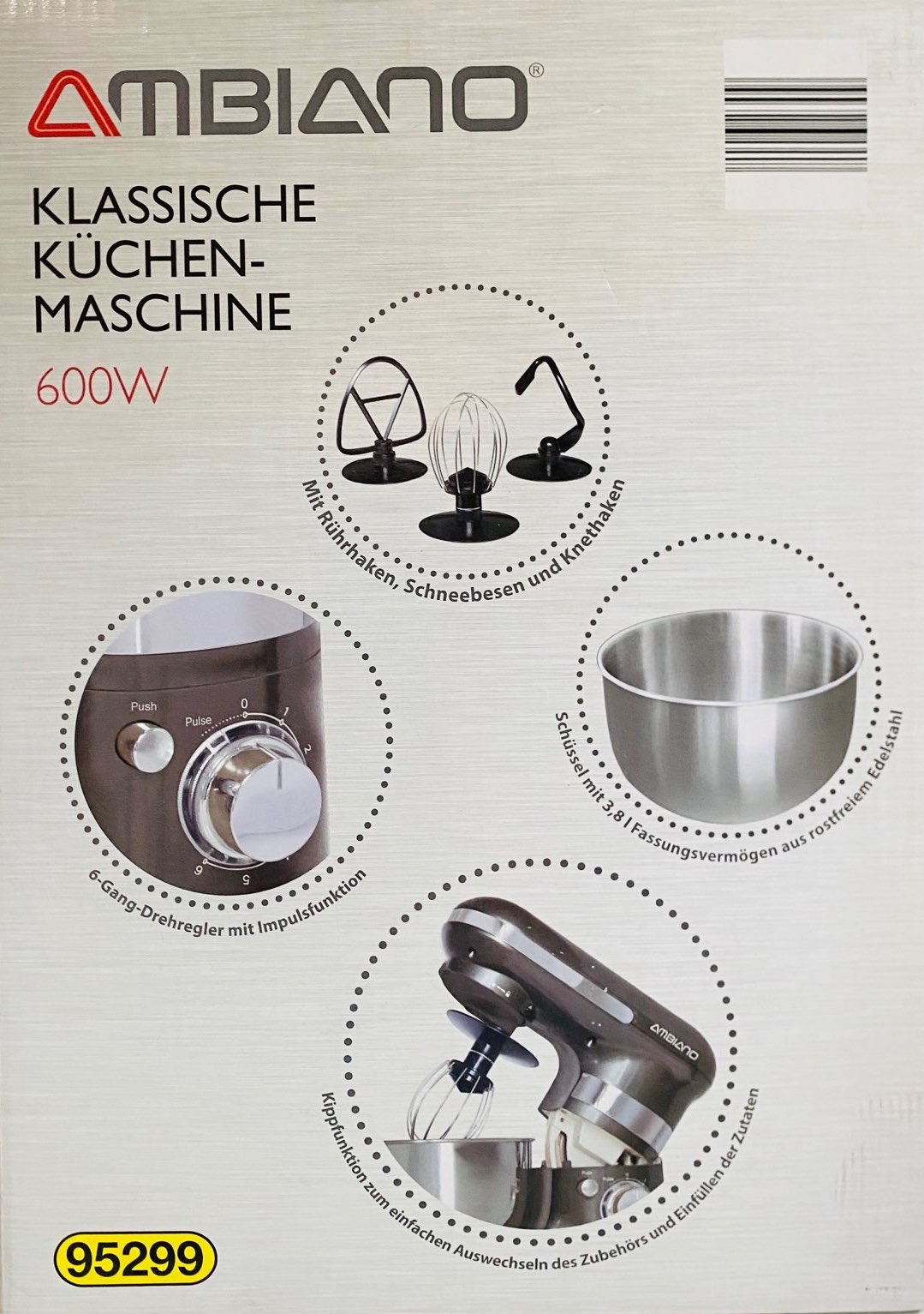 Máy trộn bột với công suất mạnh 600w cùng bát trộn lớn tới 3,8l.
